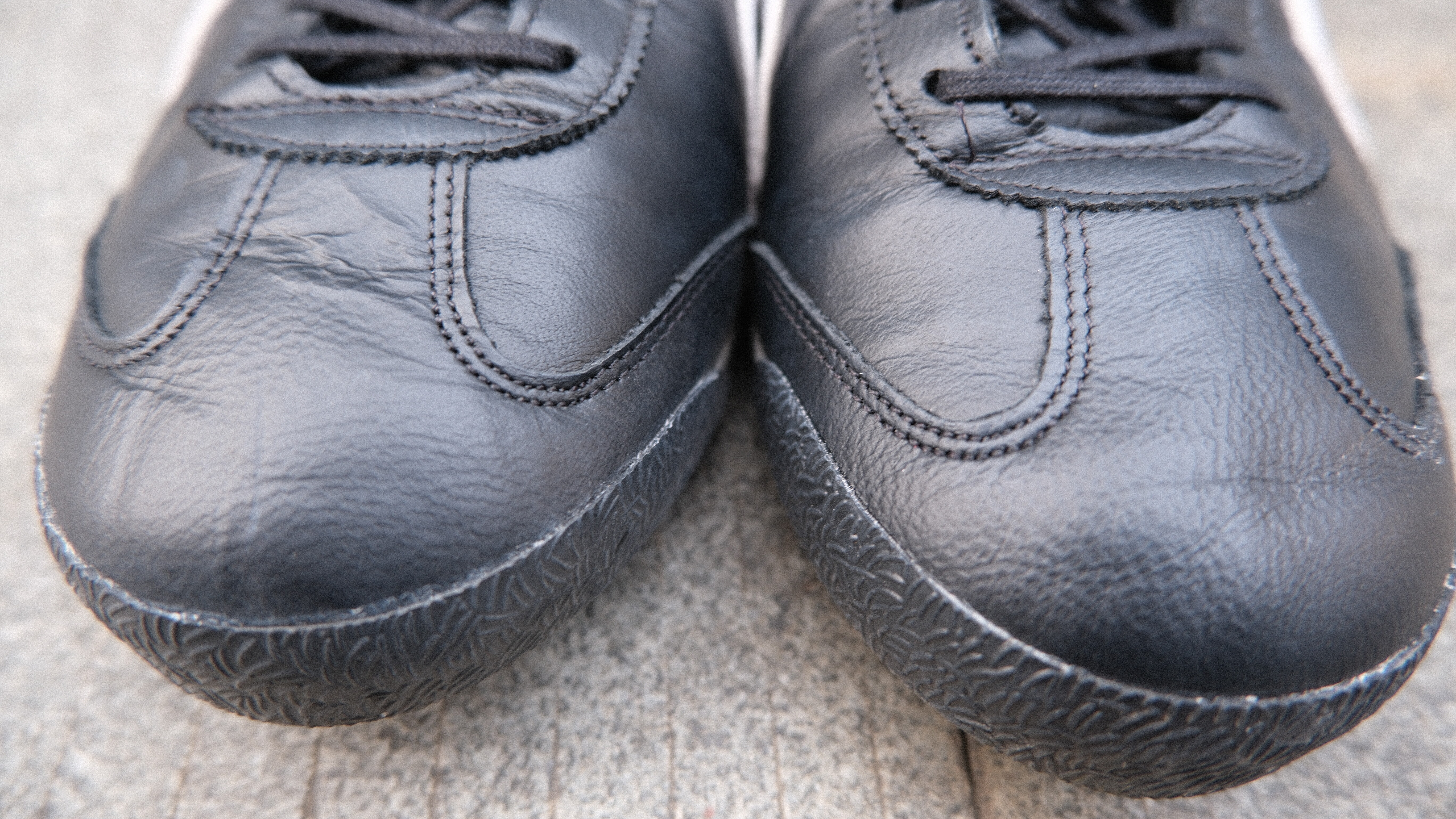 之前去 Fitting,开元老师让我穿薄底鞋,所以就选择了第二双薄底鞋,在日本买了这双土特产。得物上四位数的价格,我购入是 ¥720,一开始觉得偏紧,皮质的穿软就好,需要穿薄袜子,皮质的有个缺点,只要穿了一次就显得很久,不过想对应的,穿了很久好还是那个样子,留下岁月的痕迹吧,黑色的很百搭