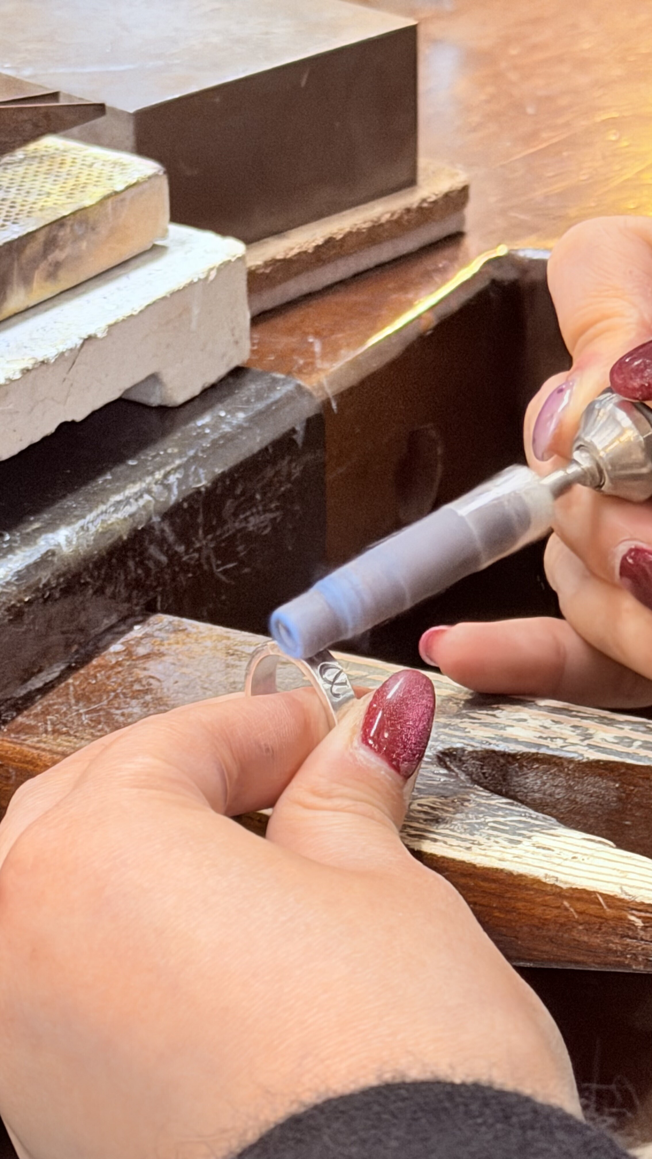 关键步骤由店员操作,折中半 DIY 的制作戒指流程确实有意思。看着成品觉得越发的好看。希望我们的感情和这枚戒指一样坚如磐石🫰