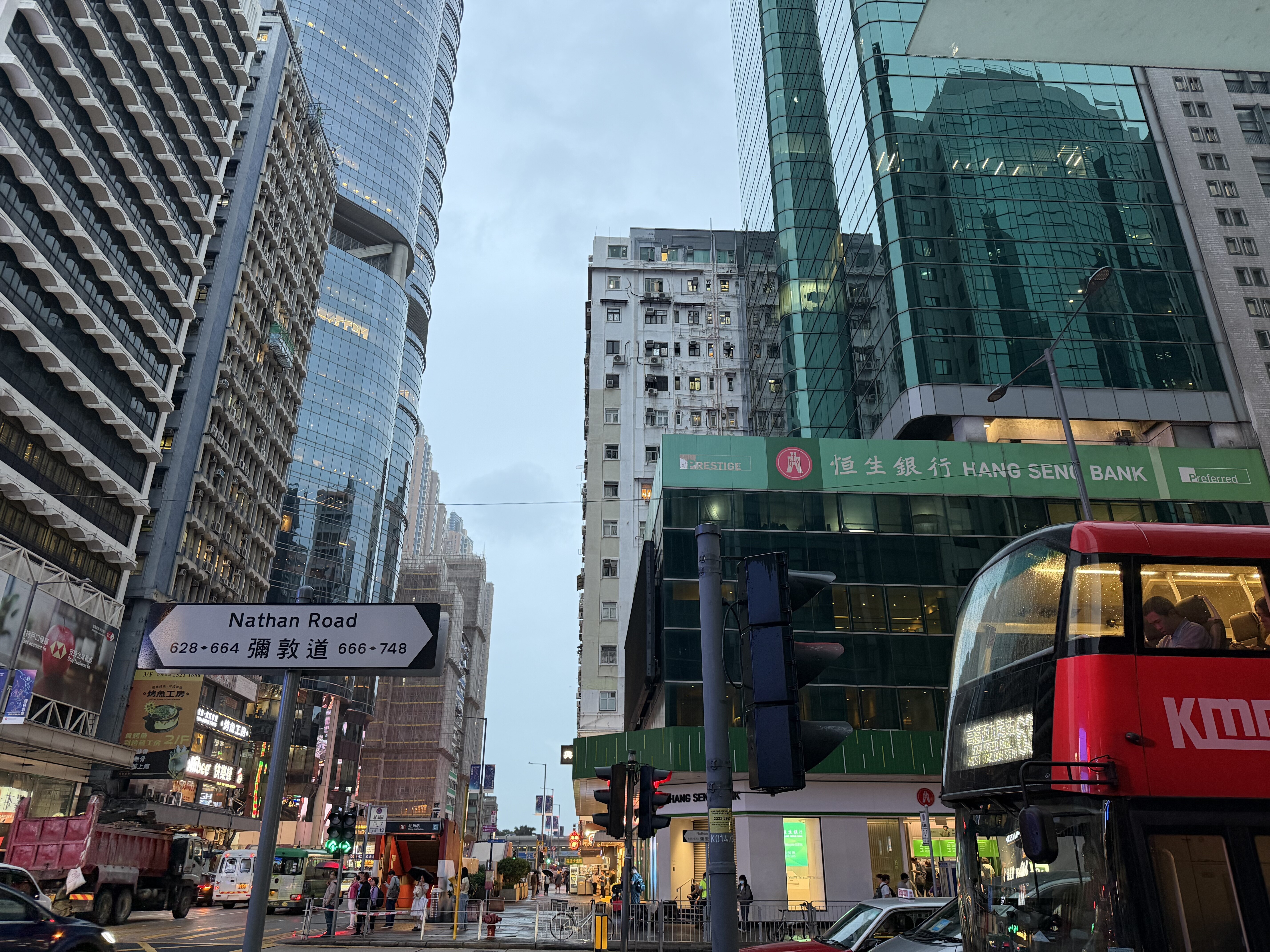 出来已是华灯初上,顺着弥敦道一路往南走,在香港过红绿灯有一种很特殊的声音,方便视障人士过马路,不过这个声音一直在催促着我走快点,很紧张,有点难受。
